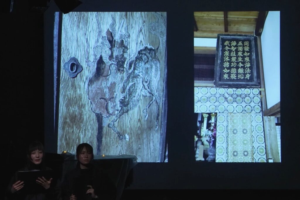 終演後の2月頭、撮影してもらった公演映像を見ながら授業の振り返りをするという集まりがあり、抜け殻の私は何とか大学まで這い出てきた。自分の映る映像を見返す時間ほど苦痛なものはないが、客観的に見ないと分からない事実は多々ある。読み方、表情、姿勢、気になる部分が次々出てきて、自分の伸びしろの長さを感じる。公演全体としては、龍峰寺のご住職との縁もあったおかげで、地域のお寺を生かした非常に地域学部らしい公演になったと感じている。